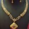 Add a touch of modern elegance to your jewelry collection with this beautifully crafted Gold Plated Geometric Pendant Necklace Set. Designed with a unique blend of traditional charm and contemporary style, this set features a structured necklace with intricately designed cylindrical patterns on the sides, connected by delicate circular links adorned with sparkling stones.