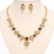 The centerpiece is adorned with a bold gemstone, complemented by delicate pearl drops that add a touch of classic charm. The matching earrings mirror the same exquisite design, creating a perfectly coordinated set.