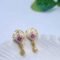 Elegant gold-plated earrings with CZ stones, pink floral accents, and a delicate drop design for a graceful look.