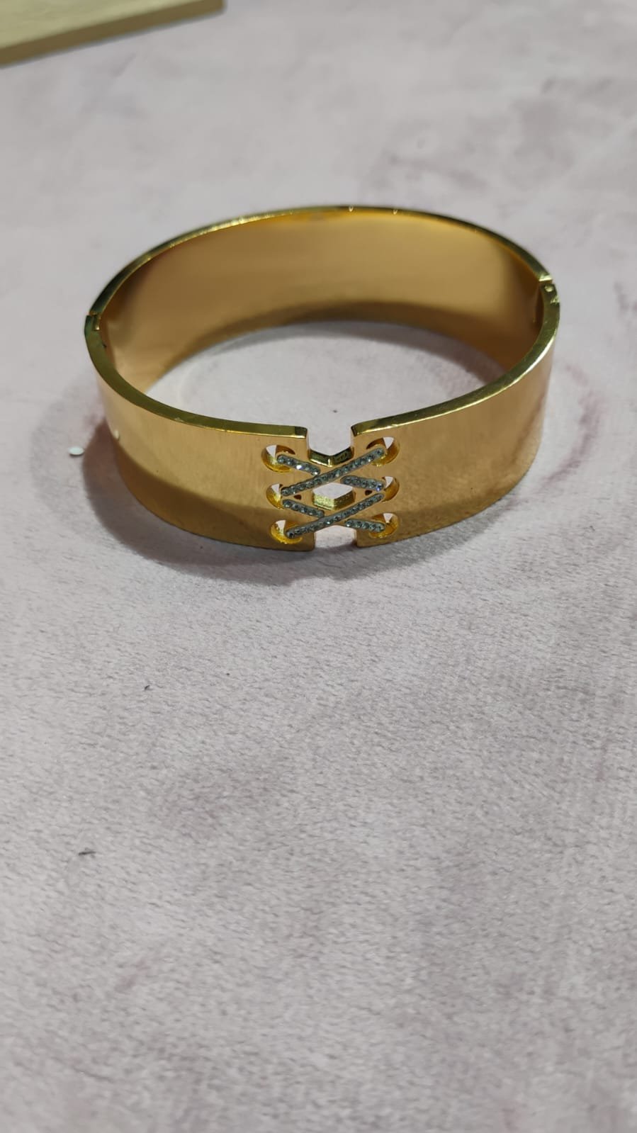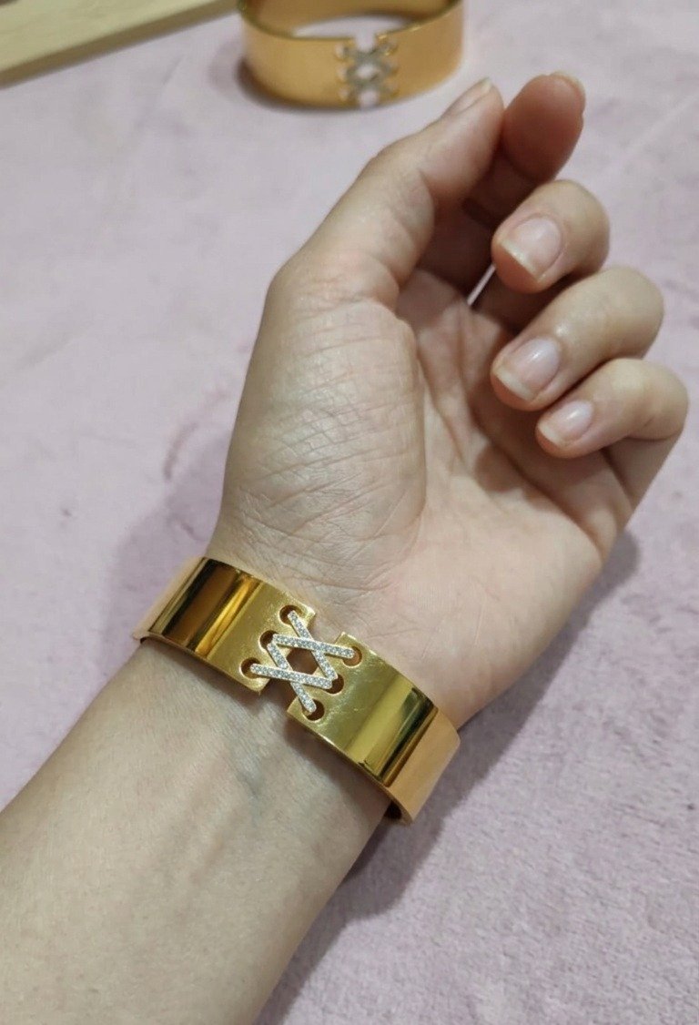 Be the first to review “Modern Gold-Tone “Criss-Cross” Laced Hinged Bangle”