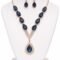 Exude timeless sophistication with this exquisite sapphire-inspired jewelry suite. Designed for the woman who loves a touch of royal brilliance, the necklace features a sequence of rich, navy-blue teardrop stones that transition into a shimmering V-shaped neckline encrusted with brilliant-cut crystals. At its heart sits a magnificent pear-shaped sapphire centerpiece, surrounded by a delicate double-halo of sparkling accents.