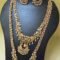The set includes two layered necklaces and a pair of matching earrings, designed to complement bridal attire, festive wear, or traditional outfits. The detailed craftsmanship and antique finish give this jewelry a luxurious and heritage-inspired appearance.