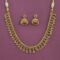 The set comes with a pair of matching jhumka earrings, perfectly complementing the necklace with their traditional dome shape and fine detailing. The gold-plated finish adds a luxurious shine, making it ideal for weddings, festivals, and special celebrations.